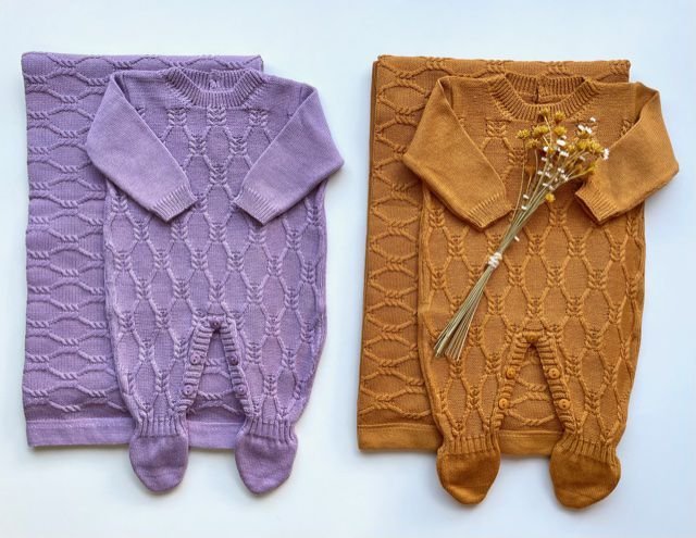 Nossa saída de maternidade acompanha: (body vendido separadamente) Manta de tricot na mesma cor e modelo do macacão; Macacão com abotoamento nas entrepernas e nas costas facilitando a troca do bebê; Medida aproximada da manta: 77 cm x 70cm
